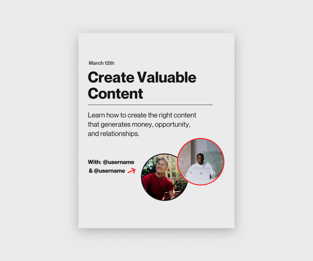 💎 1 IG Live/Podcast/Clubhouse Guest Template: Promote your upcoming podcast, IG live, or Clubhouse room by giving your audience a snippet of what's to come.